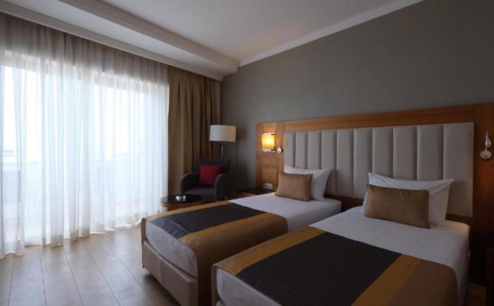 Sobe: Sunland Resort u sastavu ima 264 sobe, koje su kategorije superior ili porodične. Svaka soba ima kupatilo, fen, TV, telefon, klima uređaj, sef i balkon ili terasu. Opremljenost jedinica je ista, razlika je u kvadraturi. Superior sobe imaju 35 m2, porodične sobe imaju 55-60 m2 i sastoje se iz dve spavaće sobe. Sve sobe imaju pogled na kopno ili na more uz doplatu.