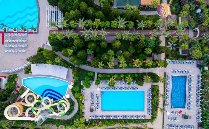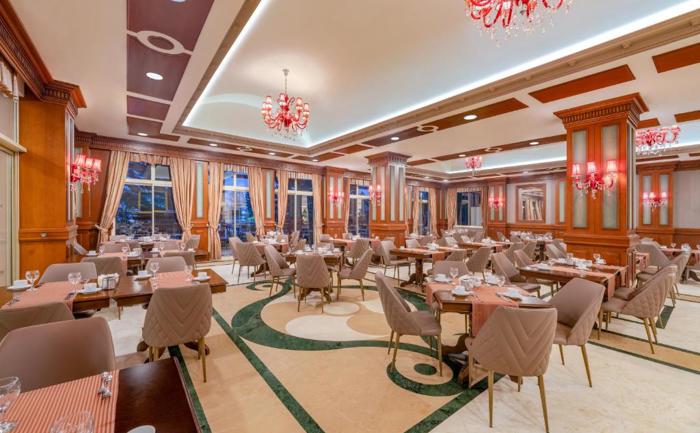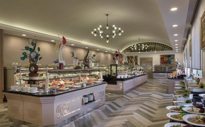 Hotelski sadržaj: Pored glavnog restorana u kojem se služe pansionski obroci na bazi švedskog stola, hotel poseduje i 7 a la carte restorana (turski, riblji, italijanski, kineski, japanski, suši i restoran mediteranske kuhinje). Od ostalih sadržaja gosti mogu uživati u brojnim barovima kao što su bar na plaži, pored bazena, vitamin i snack bar gde se služe alkoholna i bezalkoholna pića. Od ostalih sadržaja hotel poseduje poslastičarnicu, servis za pranje veša i uslugu lekara.