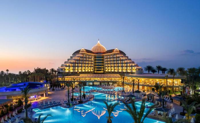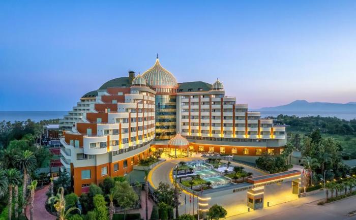 Lokacija: Hotel Delphin Palace je jedan od najstarijih i najpopularnijih hotelskih kompleksa u regiji Lare, delimično renoviran 2025-e godine. Prostire se na 40 000 m2 i nalazi se na samoj peščanoj plaži, gde se ležaljke i suncobrani koriste bez doplate. Šoping zona Lare je na svega par minuta od hotela. Od aerodroma u Antaliji je udaljen 10 km, dok je centar grada udaljen oko 15 km.