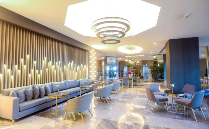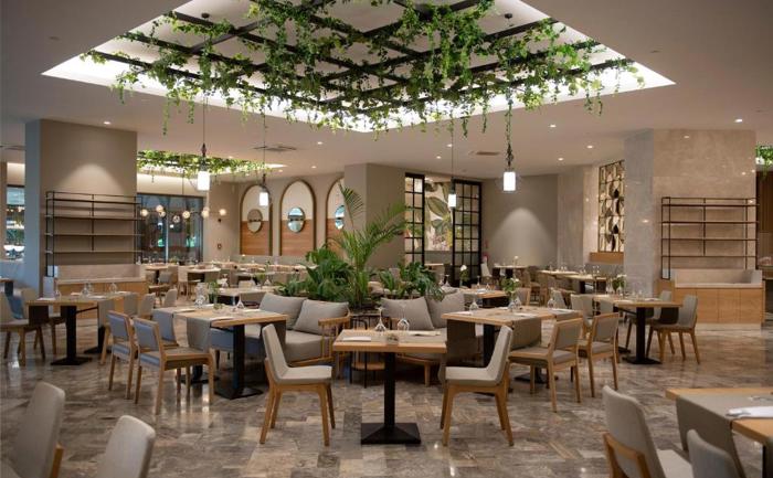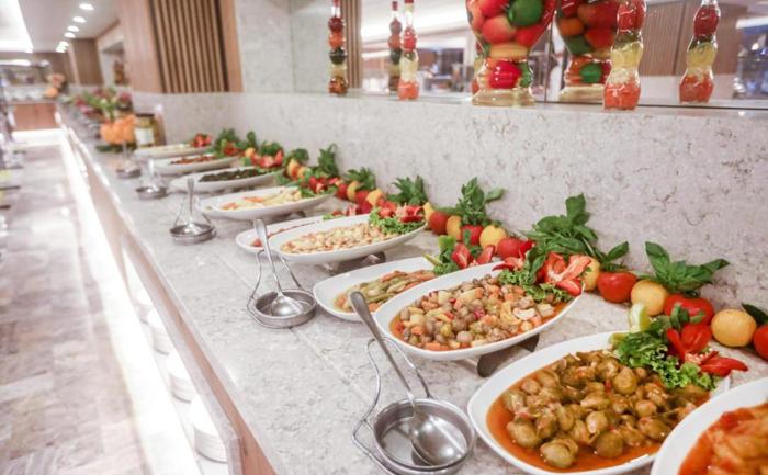 Hotelski sadržaj: Glavni restoran poslužuje pansionske obroke po principu "show cooking" i samoposluživanja. Olive A la carte je restoran specijalizovan za jela mediteranske kuhinje, gosti imaju mogućnost obroka svežih morskih specijaliteta pripremljenih od vrhunskih šefova kuhinje. Sole Mare A la carte je restoran koji priprema jela italijanske kuhinje. U Sunset baru gosti mogu 24 sata da konzumiraju sveže pripremljene hladne i tople napitke, kao i alkoholna i bezalkoholna pića. Dolce Bar i poslastičarnica nude niz ukusnih slatkih obroka, sveže pripremljenih kolačića i torti koje uz bar koji radi 24 sata pružaju posebno iskustvo. Kumm Beach bar se nalazi uz samu plažu i tokom dana služi užine i sve vrste napitaka. Caffe Del Mar je još jedan a la carte restoran gde gosti mogu konzumirati ručak i internacionalnu kuhinju u prijatnom boho ambijentu i opuštajućoj muzici. U Vitamin baru na raspolaganju su svi sveže ceđeni sokovi voća i povrća. U sastavu hotela se nalazi tkz. Comfort zona za goste koji imaju kasniji odlazak ili raniji dolazak u hotel koji odstupa od međunarodnih hotelskih pravila i satnice boravka u sobi. U sklopu zone dostupni su ormarići, kupatila, sobe za presvlačenje i sve ono što može da upotpuni boravak u objektu. Parovi koji su nedavno stupili u bračnu zajednicu uz priloženi sertifikat o venčanju dobijaju VIP tretman i posebnu pažnju, nasmejano i  ljubazno osoblje hotela će se pobrinuti da u svakom trenutku gosti mogu da uživaju u detaljima koji će biti na raspolaganju u sobi, restoranu, spa centru...
