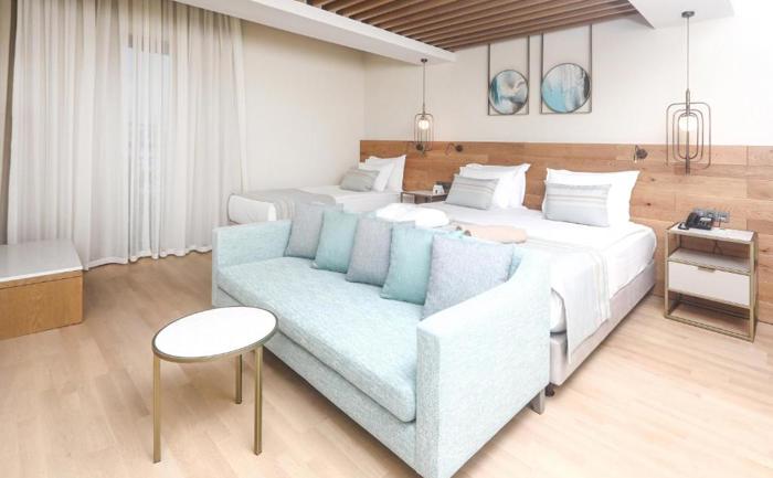 Sobe: U ponudi je 276 soba podeljenih u više tipova - superior, deluxe, suite i family superior. Sve sobe su prijatnog dizajna i pružaju udobnost tokom boravka. Svaka ima kupatilo, klima uređaj, fen, TV, telefon, sef, set za čaj i kafu i balkon ili terasu. Superior sobe (26 - 30 m2) mogu biti sa pogledom na kopno, bočnim/delimičnim pogledom na more ili direktnim pogledom na more.Deluxe sobe (70-80 m2) mogu biti u prizemlju i te jedinice imaju privatan vrt sa ležaljkama, ili na spratu - ove jedinice imaju đakuzi kadu na terasi. Suite sobe se nalaze na spratu, imaju pogled na more, sastoje se iz luskuznog i prostranog dnevnog boravka, hodnika sa velikim plakarom i spavaće sobe koja ima đakuzi kadu. Family superior sobe (42 m2)  se sastoje iz dve sobe odvojene vratima.