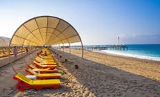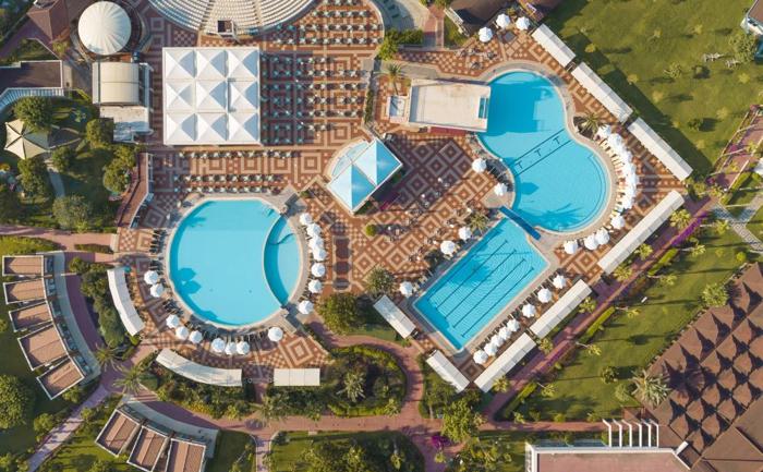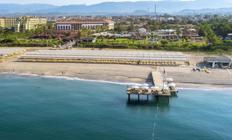 Lokacija: Turan Prince World hotel je udaljen 15 km od antičkog grada Sidea i na 75 km udaljenosti od aerodroma u Antaliji. Pozicioniran na privatnoj peščanoj plaži sa besplatnim ležaljkama i suncobranima za goste hotela i sa svojim sadržajima pruža sve mogućnosti za porodični odmor.