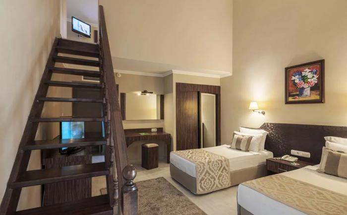 Sobe: Hotel Turan Prince World Club raspolaže sa 690 smeštajnih jedinica koje su raspoređene u glavnoj zgradi i klub zgradama. U ponudi agencije nalaze se standardne sobe (pogled kopno i more), club standardne sobe i duplex sobe. U glavnoj zgradi pozicionirane su standard sobe površine 29 m² , u svom sklopu poseduje francuski ležaj i sofu za maksimalno 4 osobe. Duplex sobe su površine 44 m² na dva sprata, na spratu je spavaća soba sa francuskim ležajem, dok je u prizemlju spavaća sa dva odvojena ležaja i dva kupatila sa maksimum pet osoba. U klub zgradi su club standard sobe površine 24-28 m² , u svom sastavu ima bračni ležaj, standardni i sofu. Duplex sobe su površine 40 m² , na spratu je spavaća soba, jedan standardni ležaj i sofa za maksimum 4 osobe. Sve smeštajne jedinice poseduju kupatilo sa tušem, fen, centralnu klimu, sef, mini bar, set za kafu i čaj, sat TV, balkon ili terasu, wi-fi.