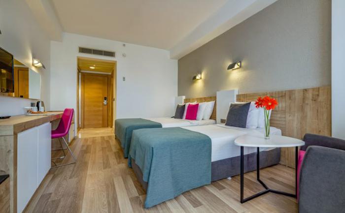 Sport i zabava: U sastavu hotela nalaze se 4 spoljašnja bazena, dečiji bazen i posebani bazeni sa toboganima. Hotel nudi celodveni sportski i zabavni sadržaj na više jezika. Svake večeri se organizuje ples i predstave u amfiteatru, dok se jednom nedeljno organizuje veče žive muzike. Ljubitelji aktivnog odmora mogu da uživaju u stonom tenisu, bilijaru, pikadu, dok za relaksaciju mogu koristiti spa centar koji u svom sastavu ima tursko kupatilo, saunu, razne vrste masaža (uz doplatu). Od sadržaja nemenjenih deci hotel ima mini klub i mini disko.