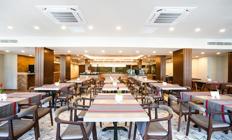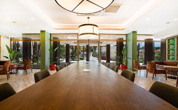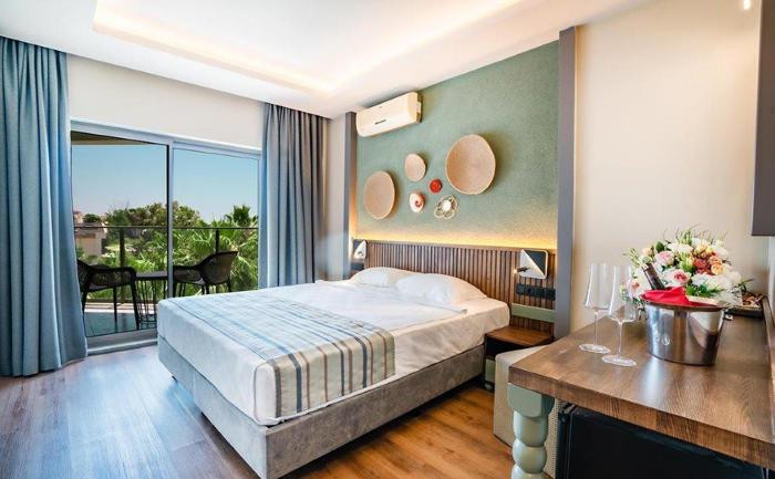 Hotelski sadržaj: Hotel je gradskog tipa i nema puno sadržaja, ali je zato svaki kutak hotela uređen sa stilom i vrlo kreativno. Na samom ulasku u hotel dočekaće vas mural koji dominira recepcijom, dok su ostali predeli uređeni vedrim bojama i dekorativnim detaljima koji se savršeno uklapaju u prirodan ambijent i nameštaj koji se nalazi u hotelu. Čitava celina je uređena sa stilom. U sklopu restorana poslužuju se doručak i večera, dok je uslugu ručka moguće realizovati na plaži hotela, u okviru snack restorana u periodu od 12:00 – 14:00h. Kraj bazena se poslužuju sladoled, kafe, razni osvežavajući napici, slatka peciva i kolačići. U plažnom baru se osim ručka poslužuje i turski snack u vidu gozleme peciva, domaća alkoholna i bezalkoholna pića, ali i pojedina uvozna što ovu grupaciju hotela izdvaja od drugih. Od dodatnih sadržaja u ponudi su servis za pranje i peglanje veša, prodavnica, rent a car desk i usluge lekara na poziv.
