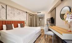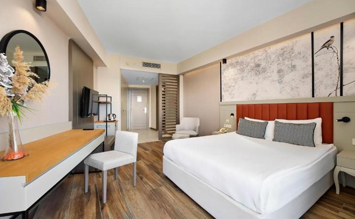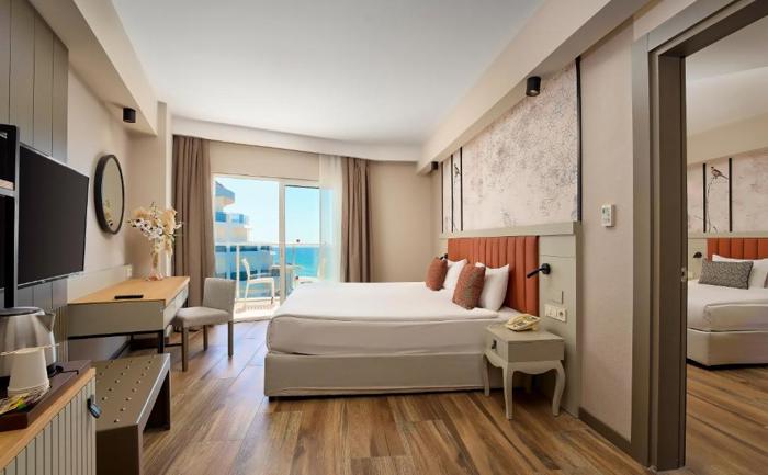 Sobe: Hotel Seaden Sea Planet Resort & Spa u svom sastavu ima 480 smeštajnih jedinica. U ponudi su standard, comfort i porodične sobe. Standard i comfort sobe (površine 28 m²) su isto opremljene i mogu imati pogled na kopno ili more. Porodičnu sobu čine dve sobe odvojene vratima, (površine 48 m²). Sve smeštajne jedinice su moderno dizajnirane i svaka ima kupatilo, fen, TV, telefon, klima uređaj, sef, mini bar, wi fi, ketler sa setom za čaj i kafu, balkon ili terasu.