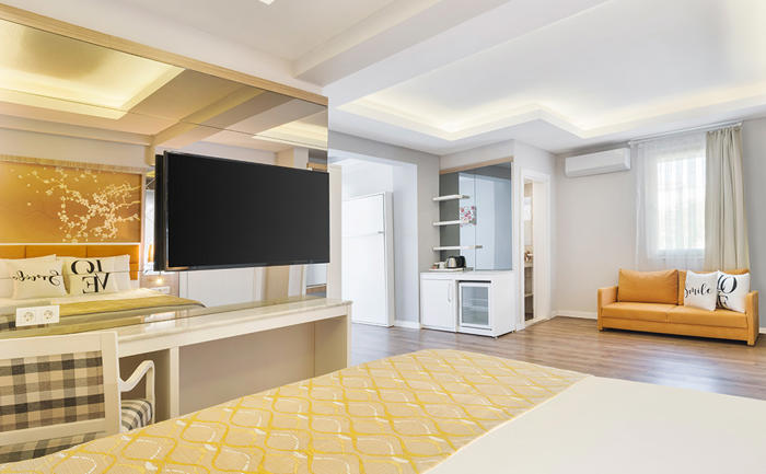 Hotelski sadržaj: Hotel Selectum Family Comfort Side (ex Lyra) poseduje glavni restoran Istanbul sa samoposluživanjem u kome gosti imaju izbor između više jela prema hotelskim pravilima i koji podrazumeva doručak, kasni doručak, ručak i večeru. U konceptu su i užine i lokalna alkoholna i bezalkoholna pića. Hotel u ponudi ima i nekoliko a la carte restorana koji su uz doplatu – riblji specijaliteti, italijanska kuhinja, turska kuhinja, Wasabi, Felicita Patisserie, Cooker’s Cellar i Sunset Snack Beach. Gostima su na raspolaganju i brojni barovi – Lobby Bar, Pool Bar, S’ Club Disco Bar, Pier Bar, Sunset Snack Bar, Selale Lake Houses Bar, Olive Bar Lake Houses i Innovador. Sveže ceđeni sokovi, uvozna alkoholna i bezalkoholna pića i sve ostalo van koncepta se dodatno plaća.