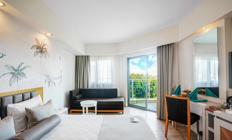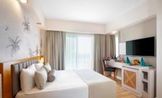 Sobe: Hotel Side Aluna ima 288 smeštajnih jedinica. U ponudi agencije su standardne sobe, renovirane 2025. godine, sa pogledom na kopno (26–28 m²), standardne sobe sa pogledom na bazen (26–28 m²), standard large sobe (31 m²) i porodične sobe sa 2 spavaće sobe odvojene vratima (40 m²). Sve sobe imaju kupatilo sa tušem, klima-uređaj, TV, besplatan wi-fi, mini-bar, sef, telefon, set za pripremu toplih napitaka i balkon.