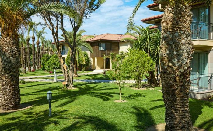 Lokacija: Tui Blue Palm Garden hotel nalazi se u regiji Side, na samoj peščano-šljunkovitoj plažI, na kojoj se ležaljke i sucobrani koriste bez doplate. Klupskog je tipa to znači da su sobe koncipirane u bungalovima. Od centra Manavgata je udaljen 14 km, od centra Side-a udaljen je 17 km,  dok je od aerodroma Antalija 80 km. Hotel je okružen zelenilom što ga čini idealnim za porodice.